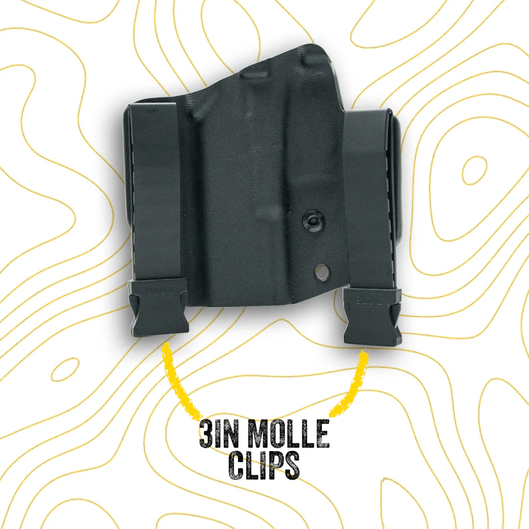 - Customizable Fit: Adjust holster ride height and forward tilt to your preference by moving the belt attachment.